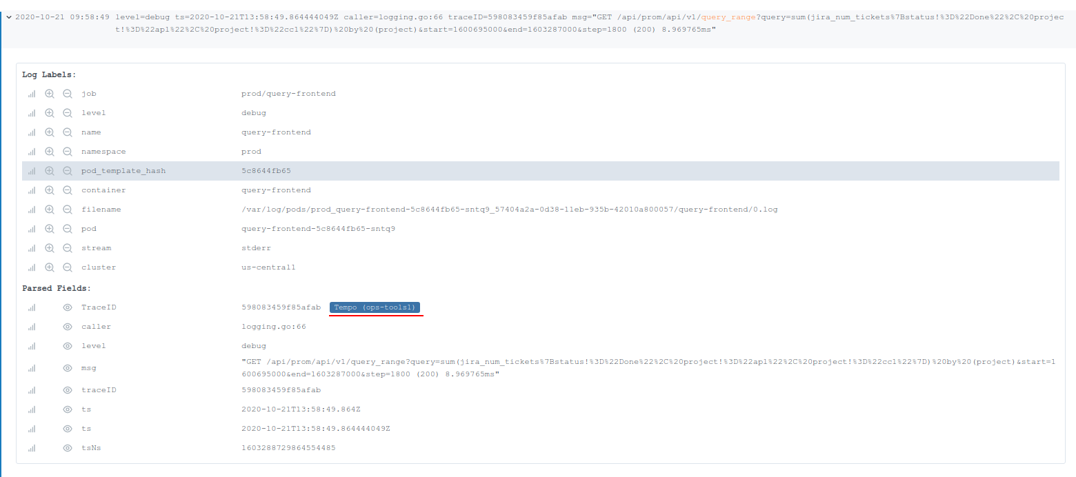 path=/api/v1/users status=500 latency=25ms traceid=598083459f85afab userid=4928All of these fields now provide a searchable index for your trace ids in Tempo. You have already invested time and money in your logging system. Leverage it to find traces too!