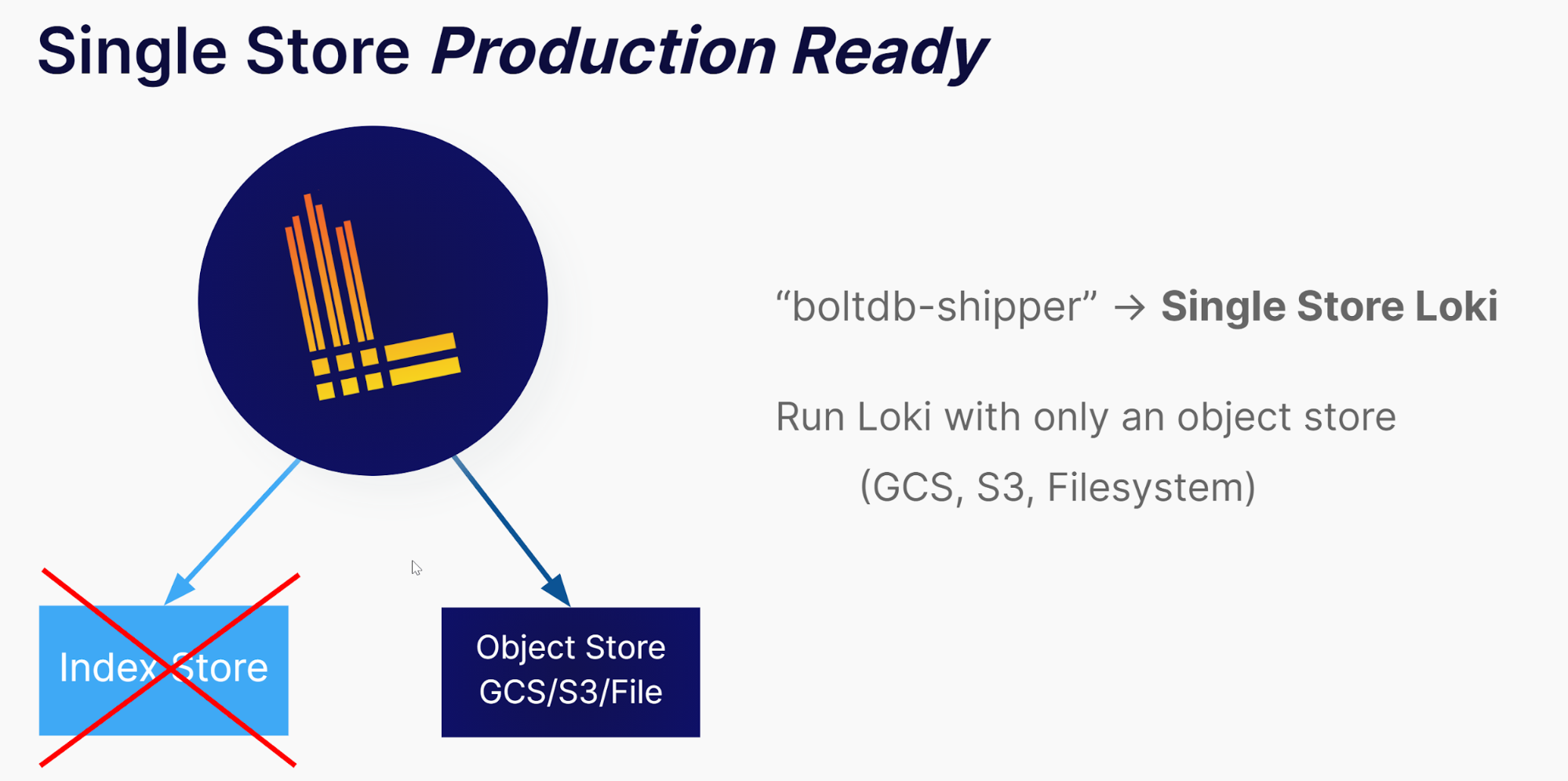 With Loki v1.5.0, we introduced a new index option called boltdb-shipper. This new index allows you to run Loki with only an object store (S3, GCS, Filesystem, etc.); you no longer need a separate dedicated index store (DynamoDB, Bigtable, Cassandra, etc.) and the additional costs that come with it! In 2.0, this is now production-ready. At Grafana Labs, we are internally migrating our clusters in this direction as we speak — or well, type.