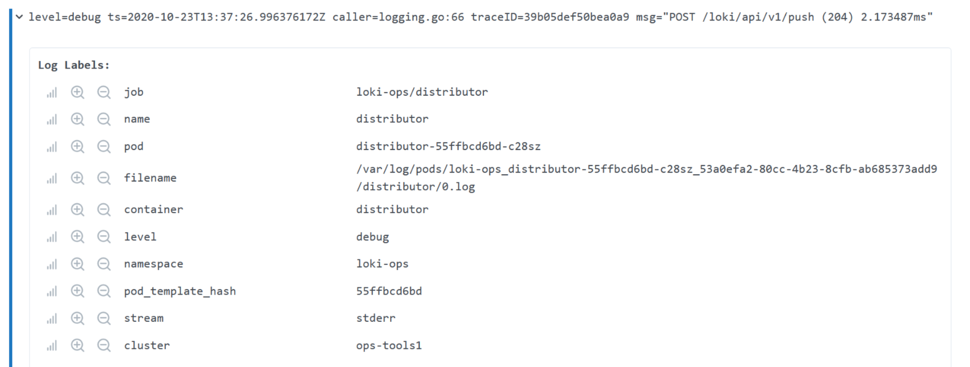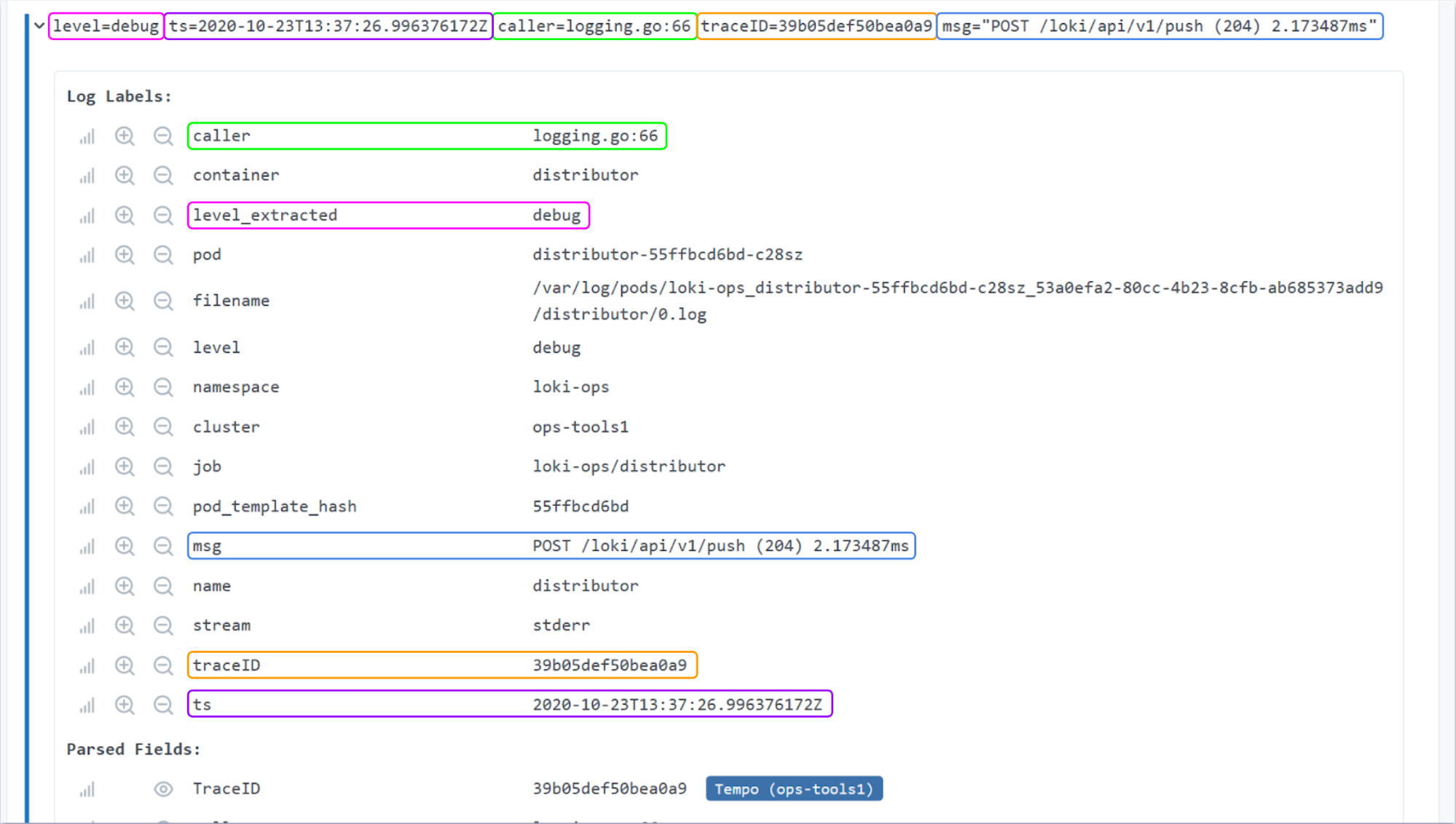 This is where we start: how we extract labels at query time. For an example, let’s look at a Loki distributor log: