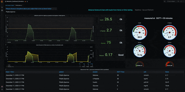 Currently, DIFFERENCE’s core use of Grafana is to display and interpret the response of key hormones and molecules, like glucose and lipids, in the blood. (This is similar to plotting blood glucose values to 75g of glucose in solution, which for decades has been a standard clinical test.)