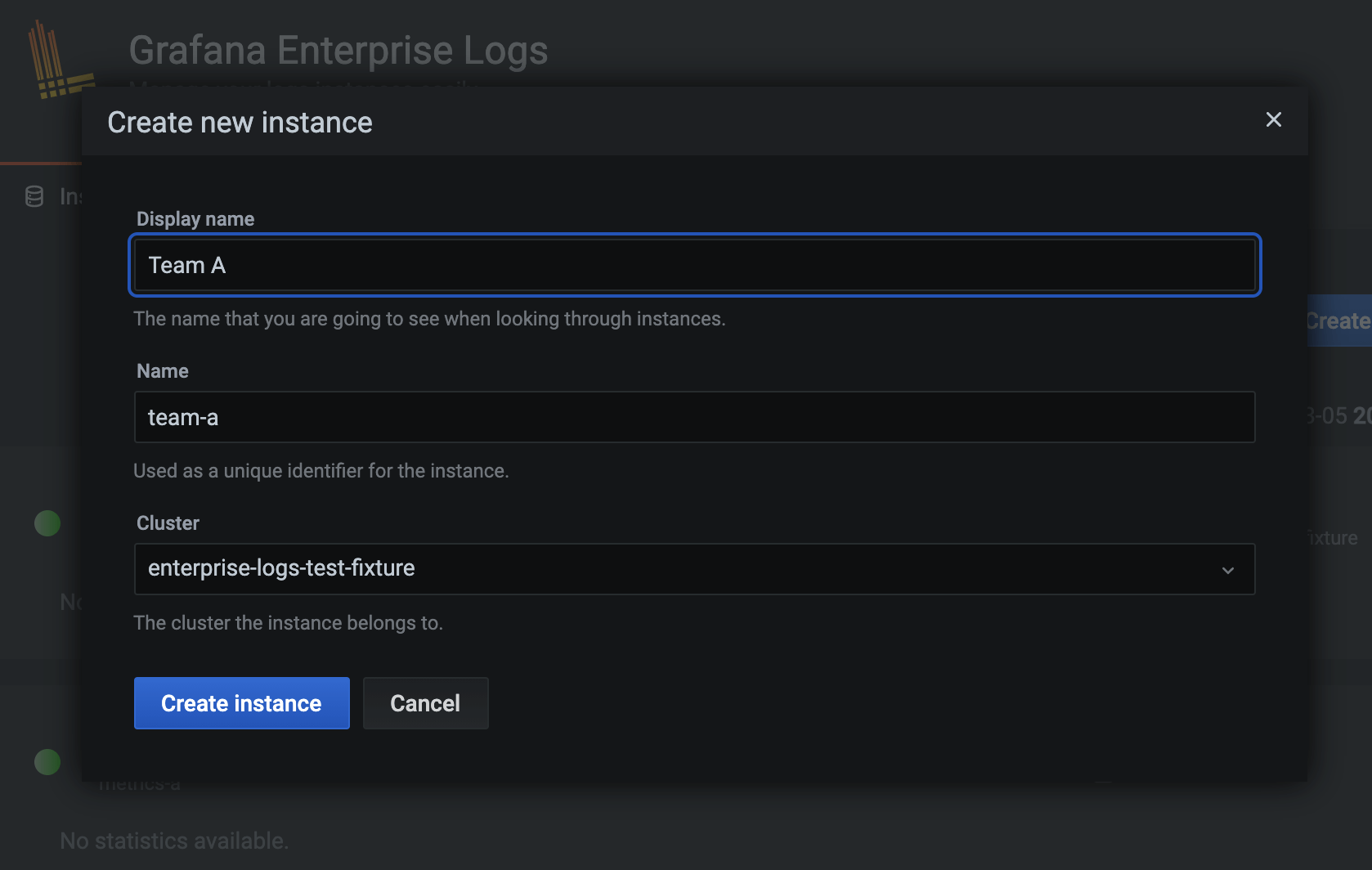To create an instance where, for example, you could keep all of Team A’s logs, you can issue a POST request: