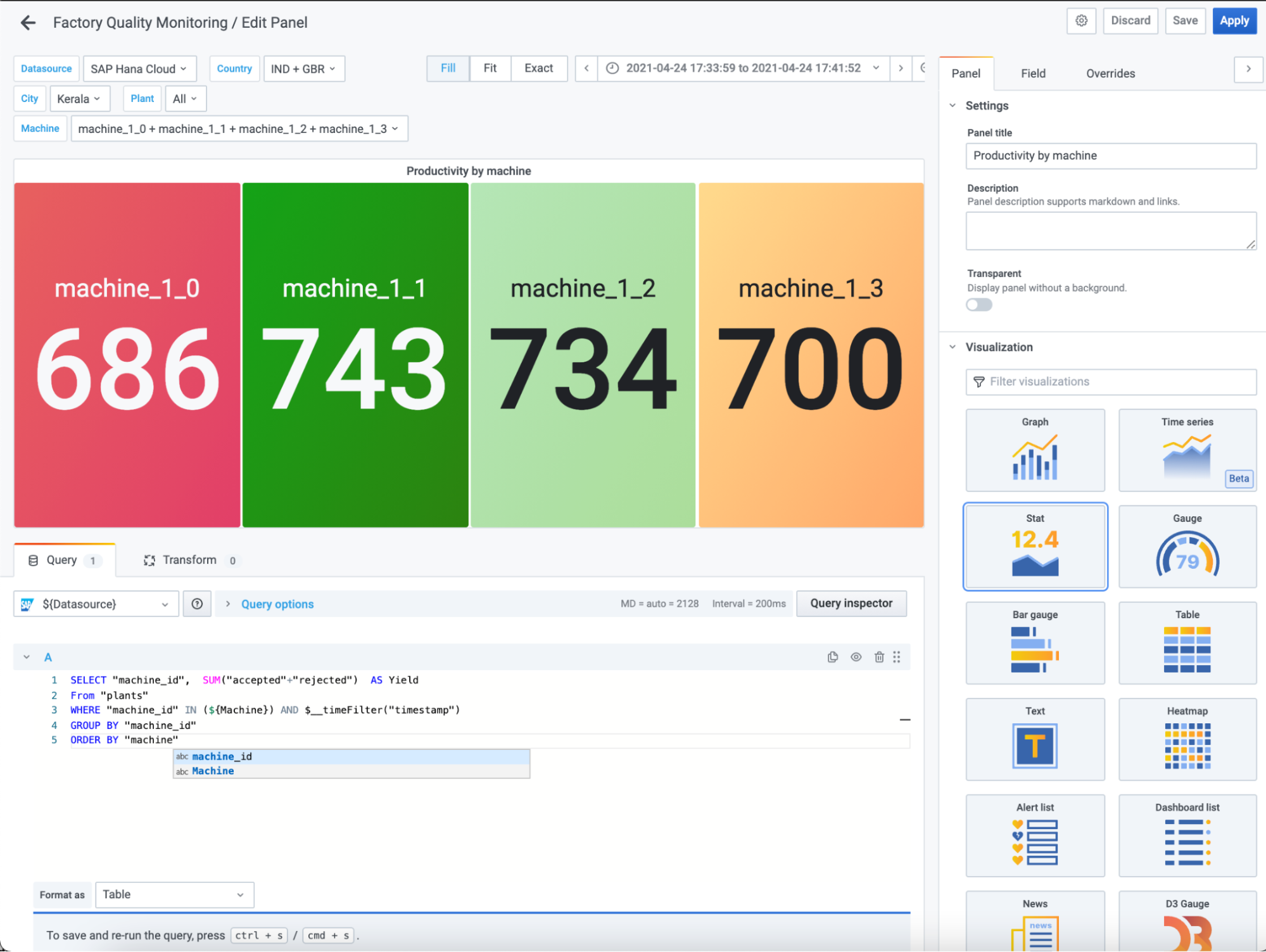 Monitor your production line with the new Grafana Enterprise data source plugin for SAP HANA®