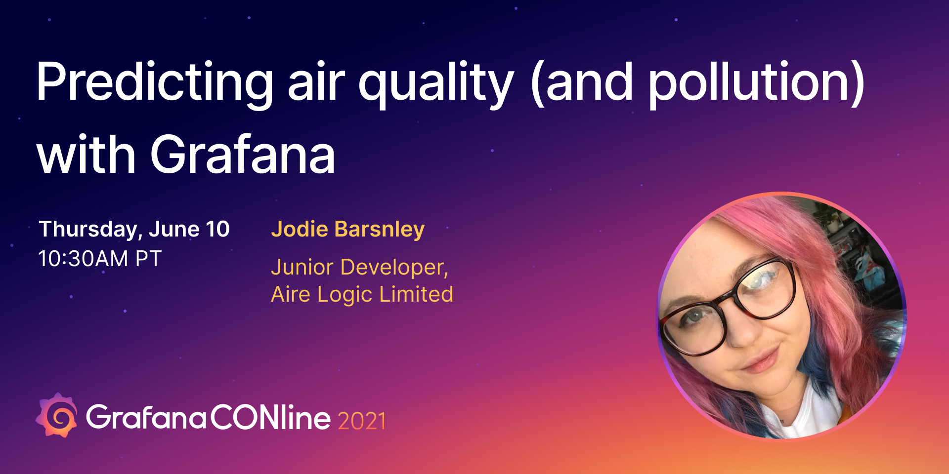 A computer science and maths graduate from Leeds Beckett University in the U.K., Jodie Barnsley wanted to make an impact in healthcare with her final master’s project. The result? Her dissertation titled “Predictive Modelling for Air Quality in an Attempt to Help Those Vulnerable to Air Pollution,” which used raw real-time air quality data from sensors in the U.K. — and InfluxDB and Grafana — to produce fairly accurate forecasting for the air quality index. Jodie, now a Junior Developer at Aire Logic Limited, presented her methodology and the analysis and prediction dashboards created with Grafana that helped produce her successful outcomes.