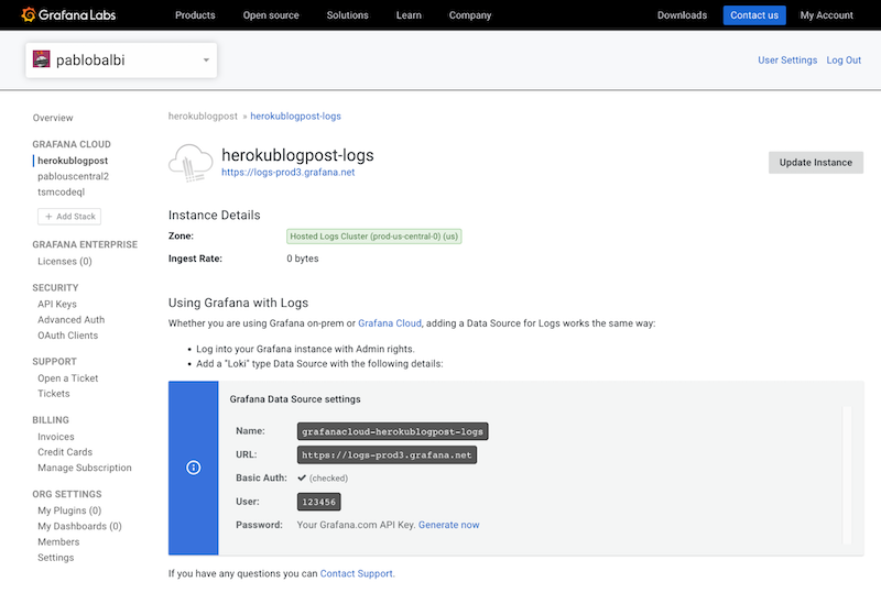 For this tutorial, every time we refer to the RealApp, we will be referring to a running Heroku application whose logs we intend to ship to Loki. Also, we are using Grafana Cloud for the Grafana and Grafana Loki instances. Also, we’ll need administrator privileges in the Grafana Cloud organization to access the Loki instance details and to create an API Key that will be used to send the logs.
