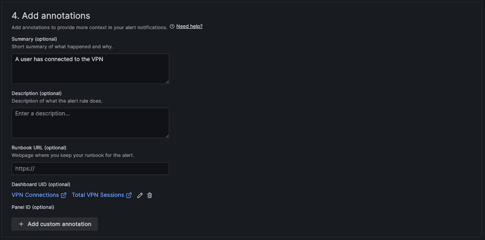 I was able to configure an alert on Grafana Cloud that reads the logs and sends alerts via Grafana IRM to a personal Slack workspace. Every time a user logs into the VPN, I receive one of these notifications: