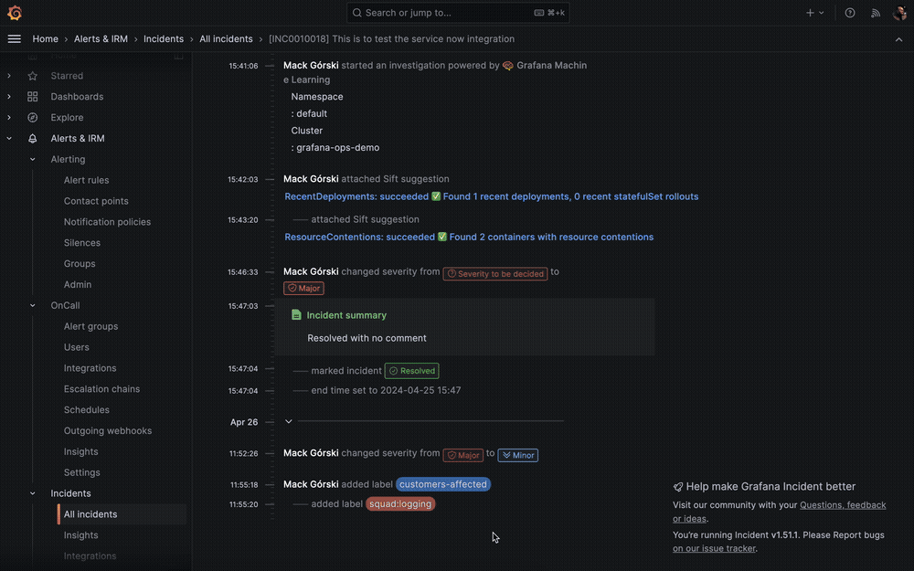 A central component of this strategy is Grafana Incident, which removes the toilsome tasks of incident management so you can focus on actually fixing the issue faster. We introduced Grafana Incident two years ago, and we’ve made a ton of improvements since then. In this blog post, we want to highlight some of the recent innovations that have reshaped our approach to incident management and provide a quick preview of what’s next so your team is well-equipped for the challenges ahead.