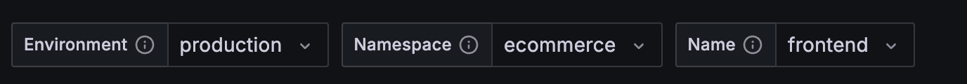 - k8s.statefulset.nameRegardless of whether you’re using OSS or Grafana Cloud, we recommend enabling keep_identifying_resource_attributes to also capture service_name, service_namespace, and service_instance_id on the target_info metric, which is very handy for dashboard filters (as shown below).