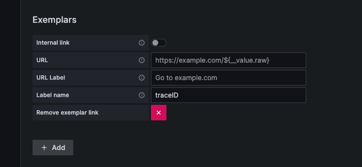 Exemplars associate higher-cardinality metadata from a specific event with traditional time series data. Refer to Introduction to exemplars in the Prometheus documentation for detailed information on how they work.