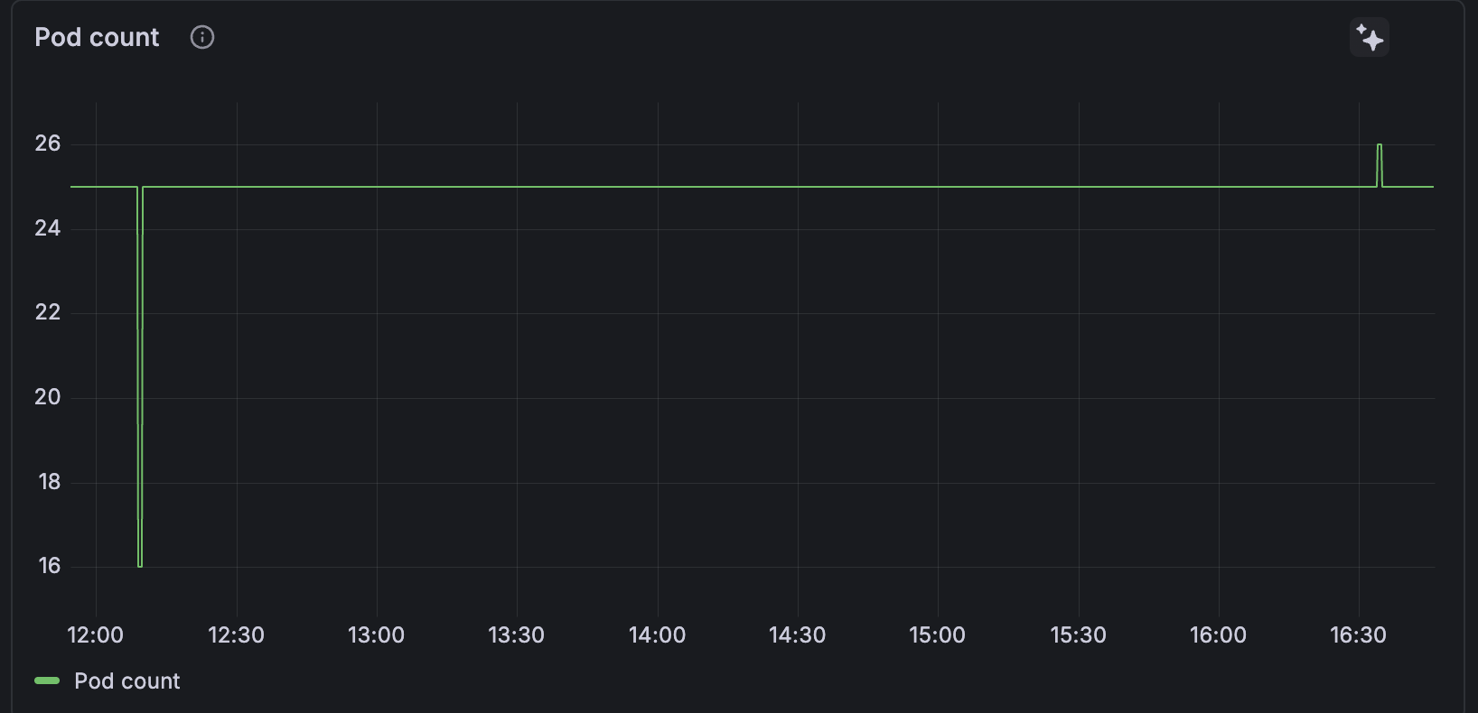 You can immediately see whether a workload is scaling up or down as expected, either manually or through an HPA.Correlate cause and effect. When latency spikes, errors increase, or CPU and memory usage changes, Pod count helps answer key questions: