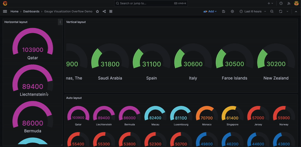 You can now visualize gauges in vertical and horizontal orientations with overflow. This resolves an issue where the design would break when the number of gauges exceeded the available space.