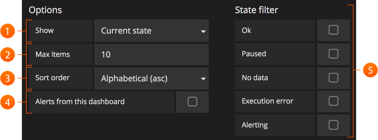 - Alerts From This Dashboard`: Shows alerts only from the dashboard the alert list is in.