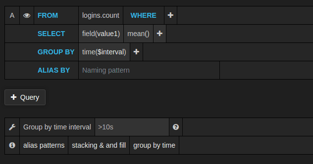 The new editor also allows you to remove group by time and select raw table data. Which is very useful in combination with the new Table panel to show raw log data stored in InfluxDB.