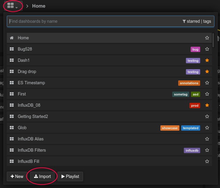 Go to Import dashboards view