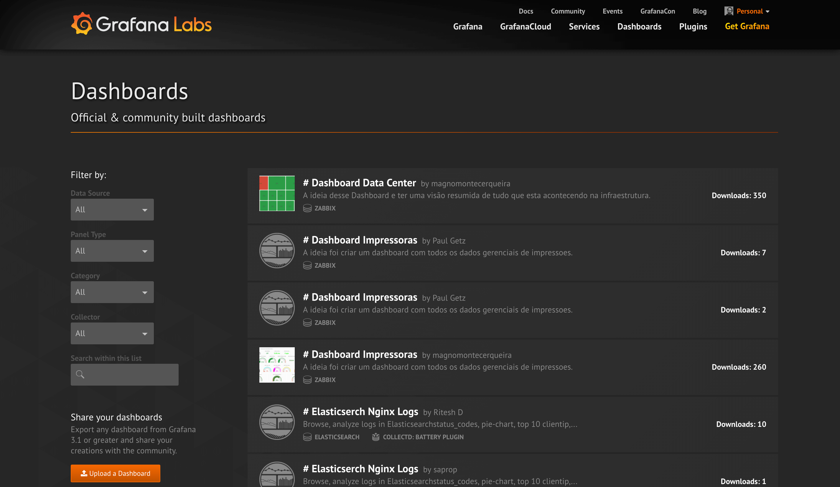 Discover dashboards on Grafana.com