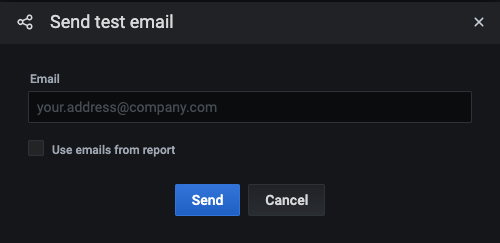 - In the Email field, enter the email address or addresses that you want to test, separated by semicolon. If you want to use email addresses from the report, then select the Use emails from report check box.