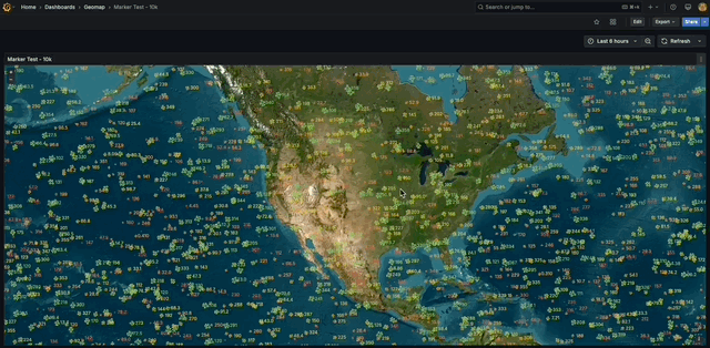We’ve moved over to WebGL for geomap marker layers. You can expect a significant increase in performance and stability, which is especially noticeable for larger datasets.
