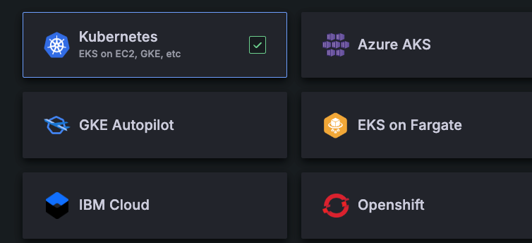 You can now choose Azure AKS as a platform when using the easy deploy method with the Kubernetes Monitoring Helm chart. This sets the required annotations in the Helm chart config file.