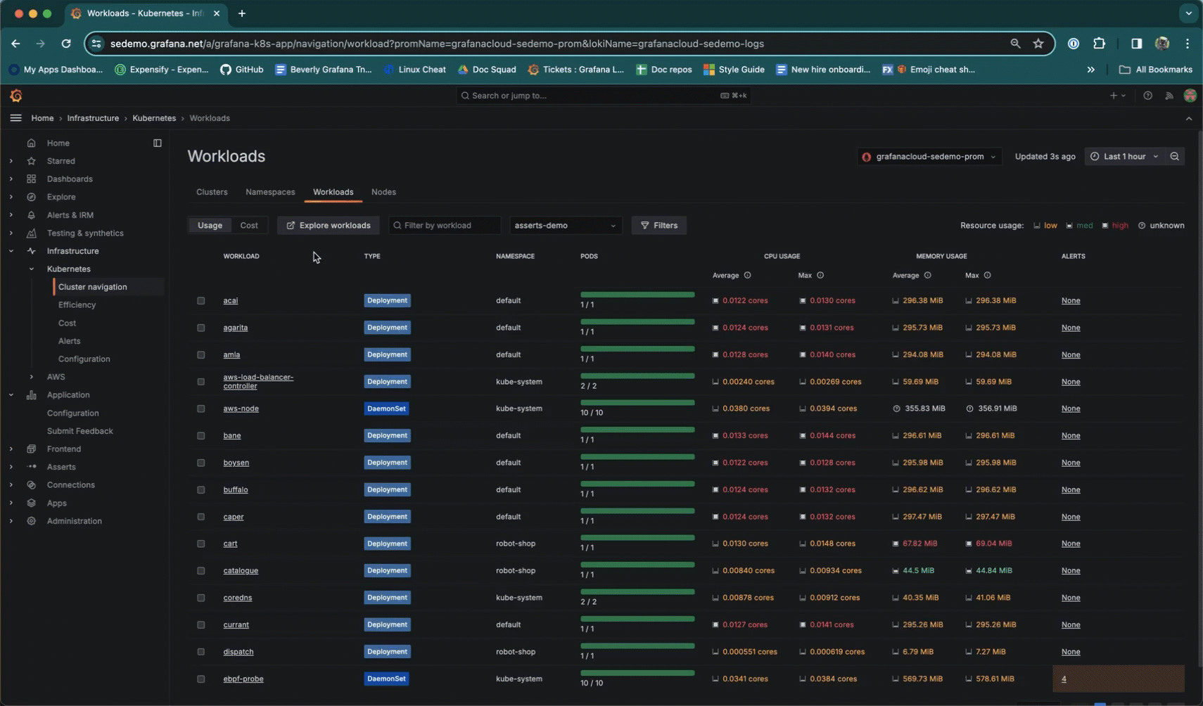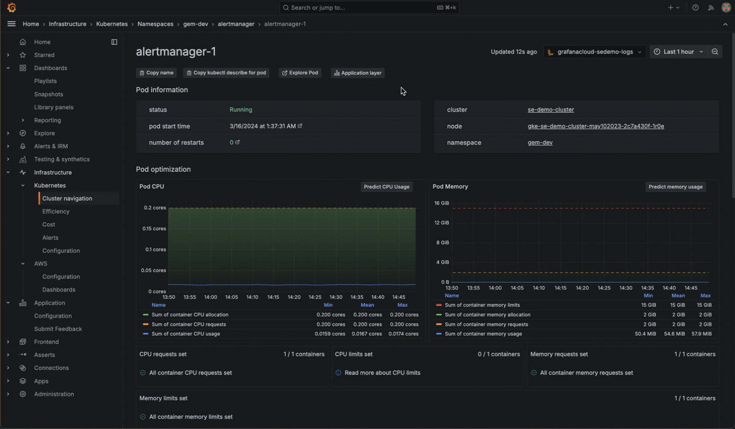 On any Pod or workload detail page, you can navigate directly to Application Observability to see more data about the application.